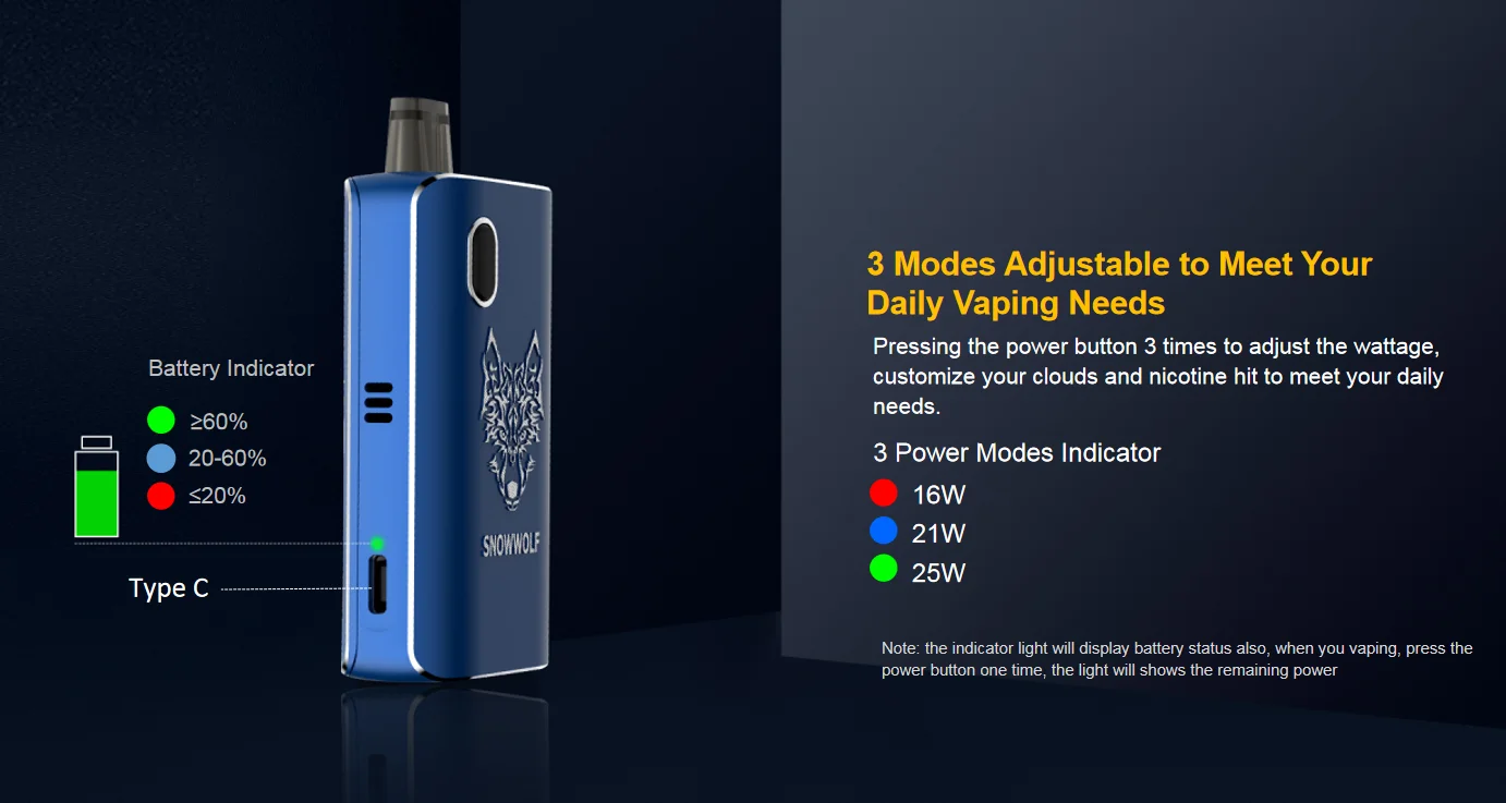 Avec la technologie unique de la bobine et la conception du flux d’air réglable, Afeng vous permet de profiter d’une plus grande expérience de vapeur, et en attendant, d’obtenir le goût plus riche, pour remplacer le tabac.