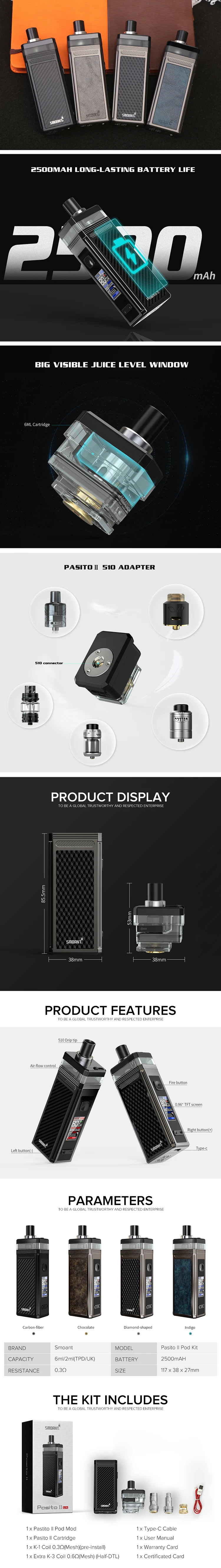 Smoant – Kit de Cigarettes électroniques Pasito II, cartouches de 6ml, avec batterie de 2500mAh et écran TC