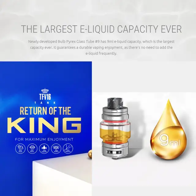 SMOK TFV16 réservoir de 9ml capacité atomiseur de Cigarette électronique plaqué or adapté au Mod de boîte à filetage 510