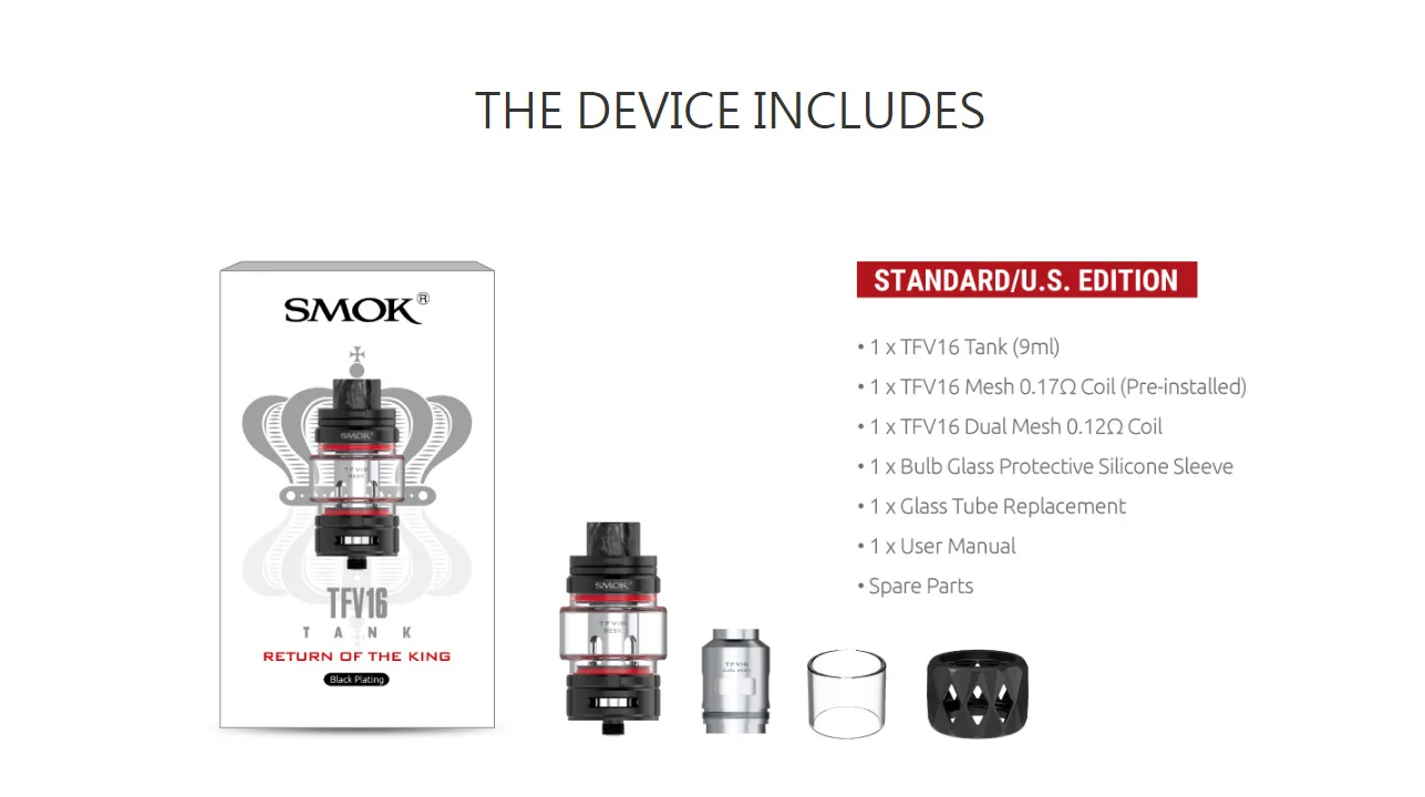 1 x bobine SMOK TFV16 maille 0.17Ω (pré-installé)