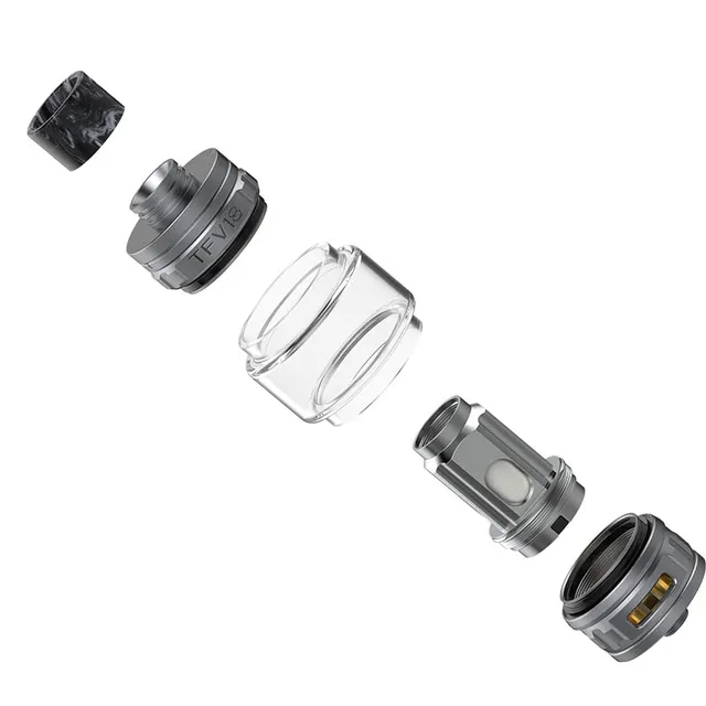 Capacité: 7.5ml (avec bobine TFV18 maille 0,33 ohm), 6.5ml (avec bobine TFV18 double maille 0,15 ohm)