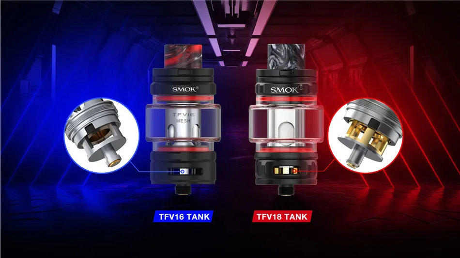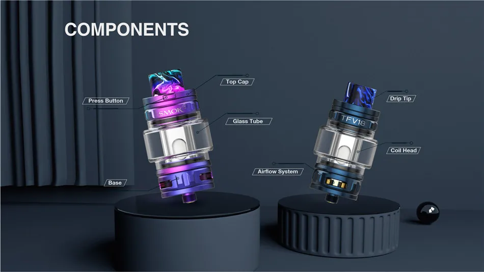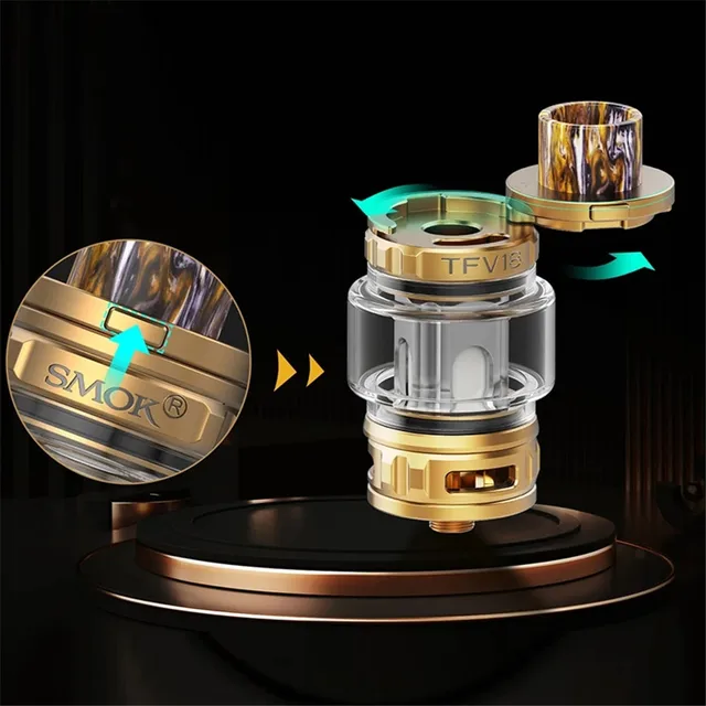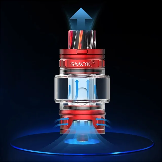 Le réservoir TFV18 est un réservoir sub ohm qui peut être flexible pour changer les goûts entre DL et RDL. Il peut contenir 7.5ml (avec bobine TFV18 maille 0,33 ohm) ou 6.5ml (avec bobine TFV18 double maille 0,15 ohm). Le système de flux d’air droit de bas en haut qui fonctionne à travers 3 grandes fentes permettra à la vapeur riche d’aller directement à votre bouche dans un temps limité. Les 5 accolades sur la base transféreront l’alimentation à la bobine pour un chauffage circulaire et rapide. Avec la conception de capuchon supérieur à l’épreuve des enfants, il peut éviter la fuite du boîtier en ouvrant accidentellement le capuchon supérieur. Il y a la pointe d’égouttage droite en résine à large alésage pour capturer les flux de vapeur et offrir une expérience de vapotage confortable.