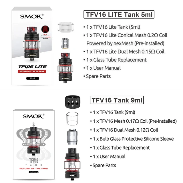 SMOK – atomiseur TFV16 LITE, réservoir de 5ml, résistance du noyau de bobine de tête pour SMOK Mods