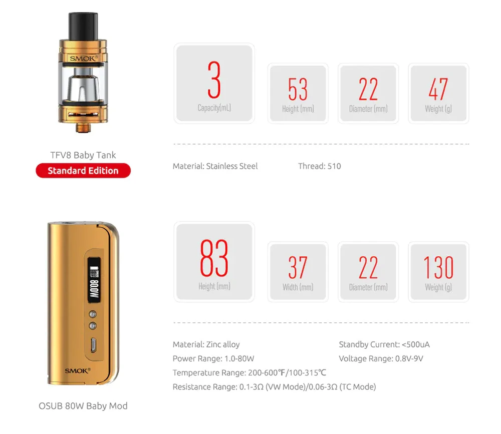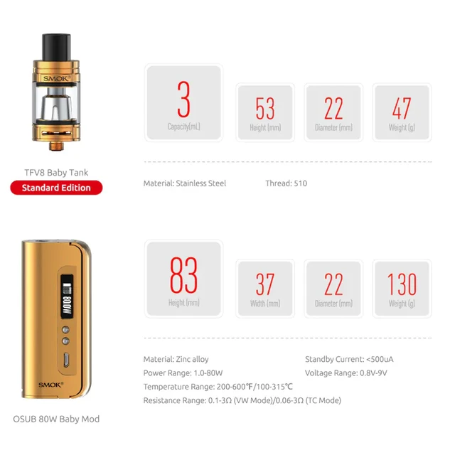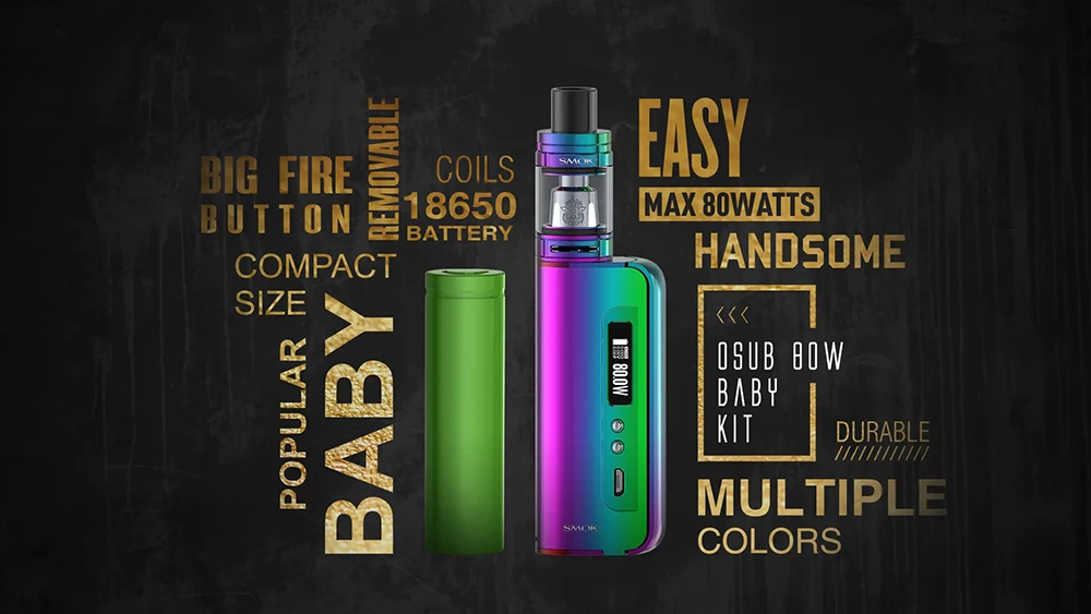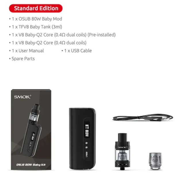 SMOK Box Mod OSUB Baby – Cigarette électronique 1-80W, vaporisateur TFV8, réservoir, stylo électronique, bobine Q2 T8 S210