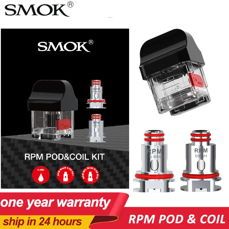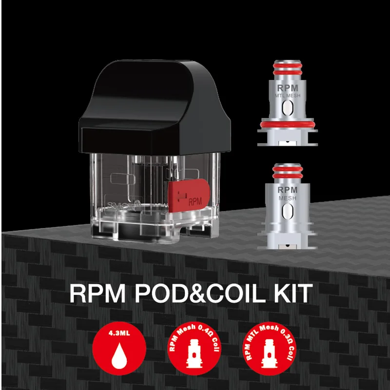 SMOK – Cigarette électronique avec système de dosettes RPM40, réservoir de 4.3ml, maille 0,4ohm, bobine RPM 40 MTL Core