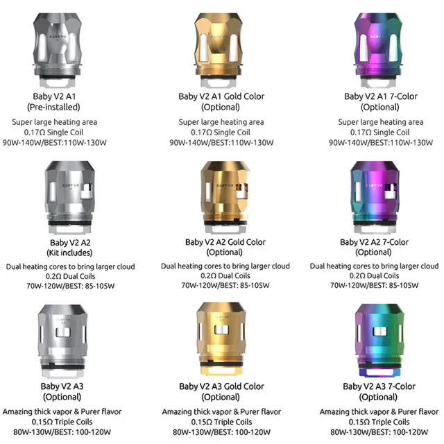SMOK – Cigarette électronique d’origine TFV8 bébé V2 S1 S2 A1 A2, tête de remplacement de bobine, vaporisateur adapté au réservoir V9 Max