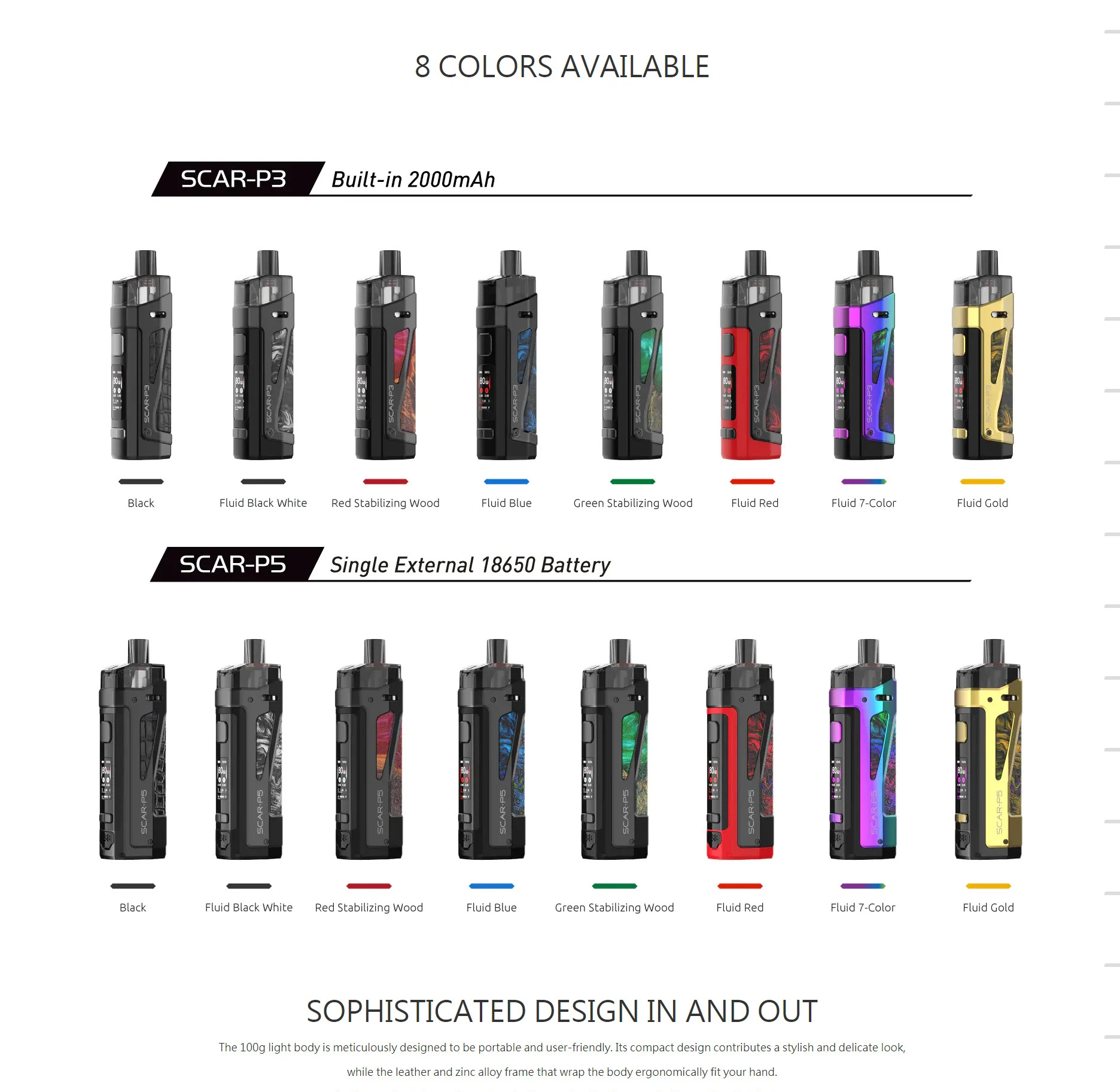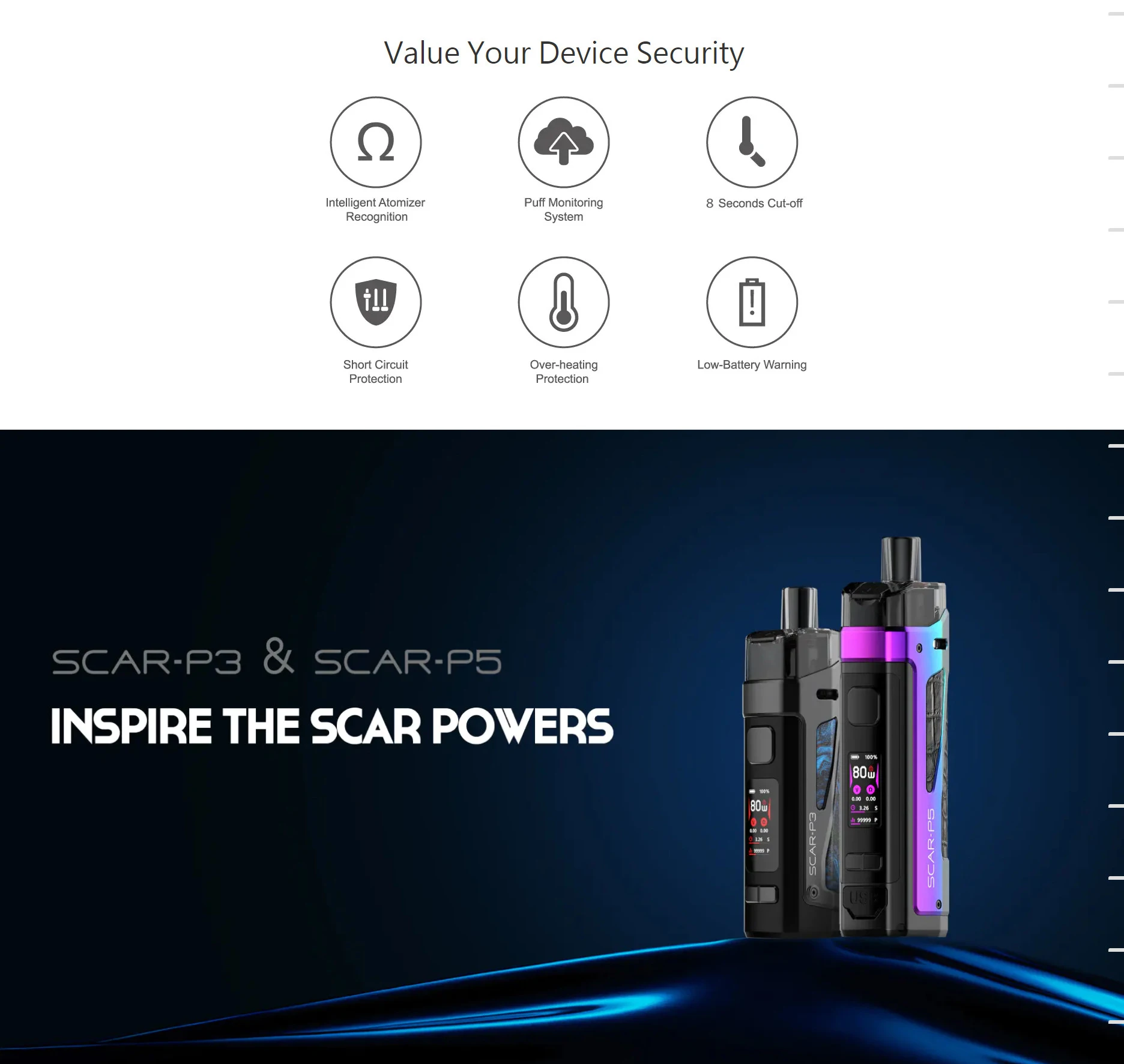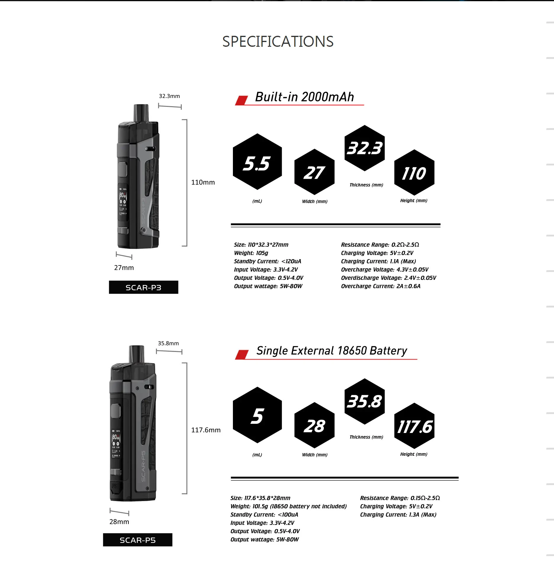 | Numéro de Modèle | SCAR-P3 Pod Kit & Scar-P5 pod Vape |