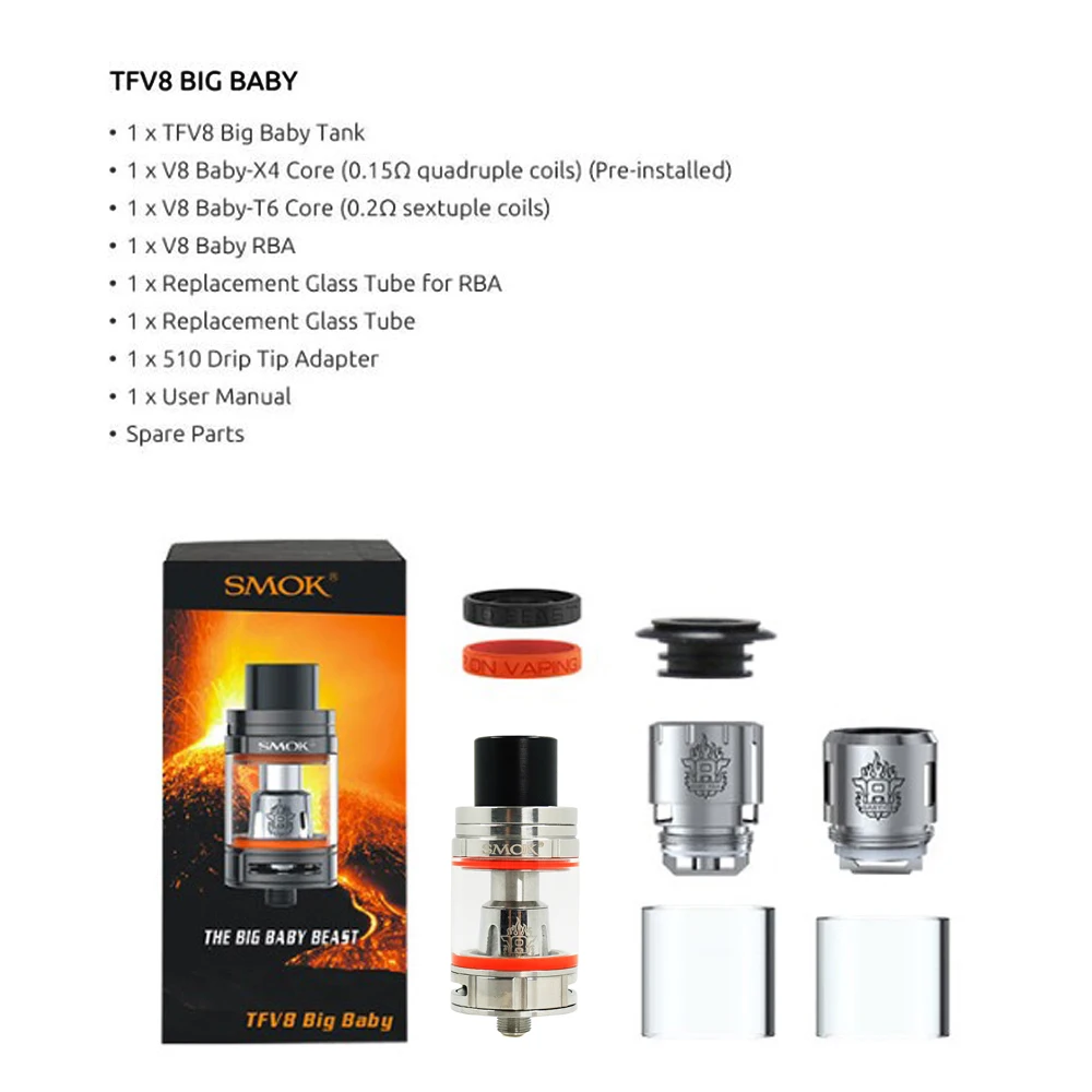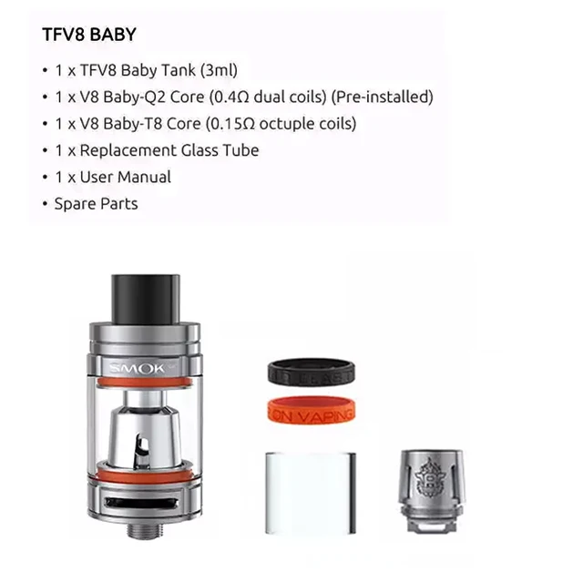 Remarque: le grand réservoir pour bébé TFV8 de 5ml n’est pas inclus