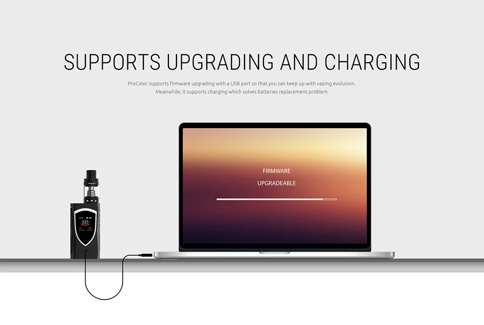 La puissance de sortie maximale de ProColor peut atteindre 225W et vous offre deux modes.Le Mode température peut améliorer la consistance et le goût de chaque bouffée. Le Mode Watt est parfait pour la poursuite du cloud.
