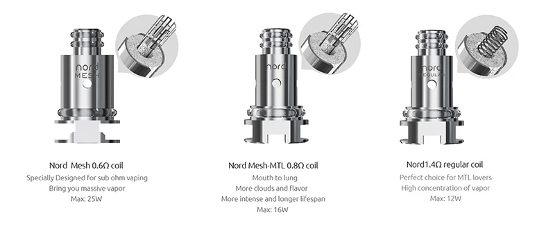 8. Bobine Nord Mesh 0,6 ohm et bobine Nord Mesh-MTL 0,8 ohm incluse