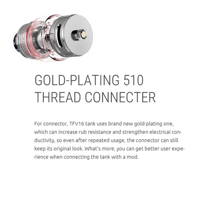 Le TFV16 dispose d’un système de remplissage par le haut à pression pour des recharges d’e-liquide simples et sécurisées.