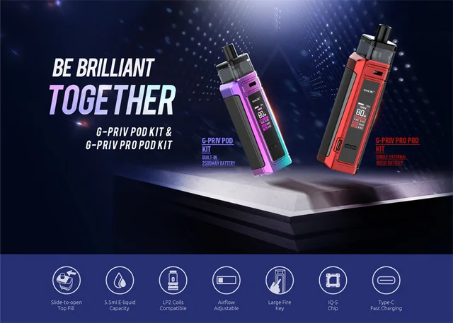 Vape SMOK g-priv Pod vide LP2 Pod adapté LP2 bobine maillée et vide RPM2 Pod adapté à la bobine RPM2 cartouche de 5.5ml pour g-priv & g-priv Pro Pod
