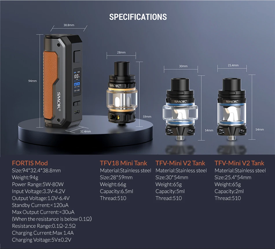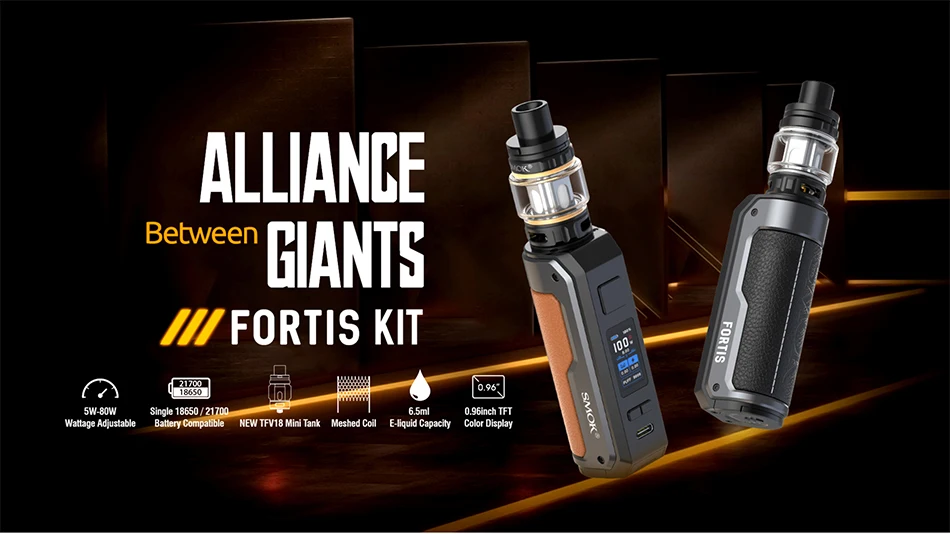 SMOK Fortis – Kit de Cigarette électronique 80W, avec Mini réservoir de 6.5ml TFV18, Mini maille 0,2ohm, bobine