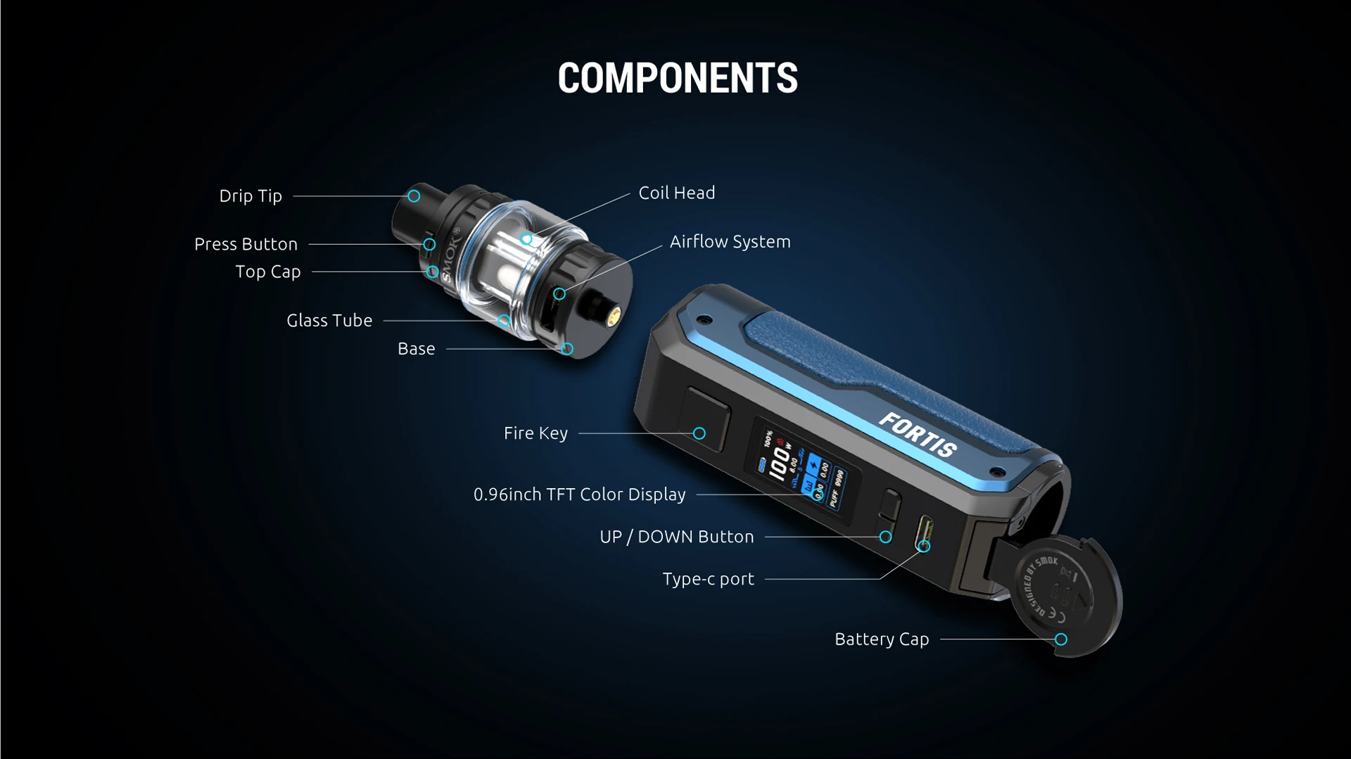 SMOK Fortis – Kit de vapoteur de cigarettes électroniques 80W, Mini réservoir de 6.5ml TFV18, bobine mesed 0,2ohm, Mod Vape VS Thallo S