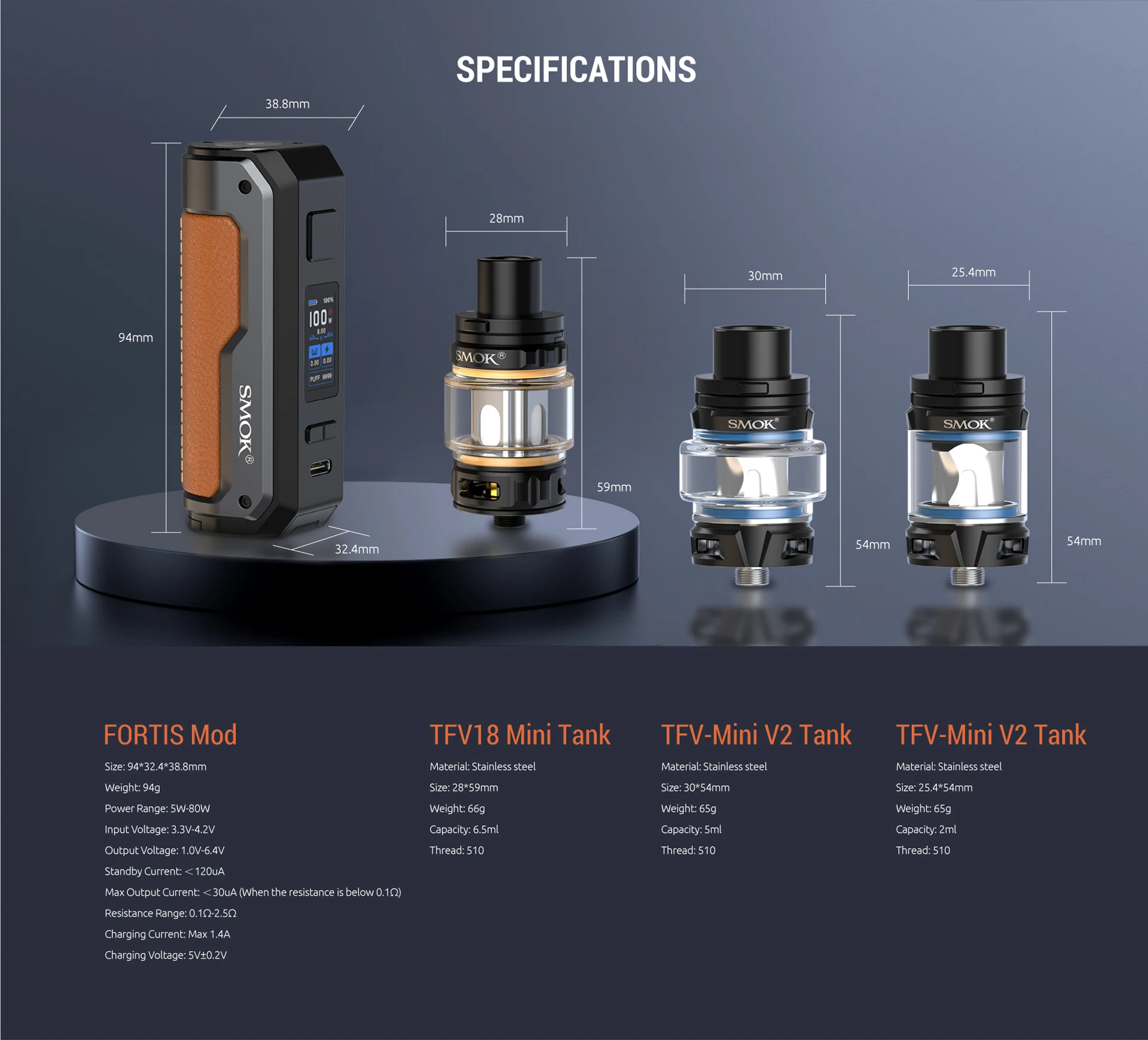 Paramètres du Kit SMOK Fortis Vape: