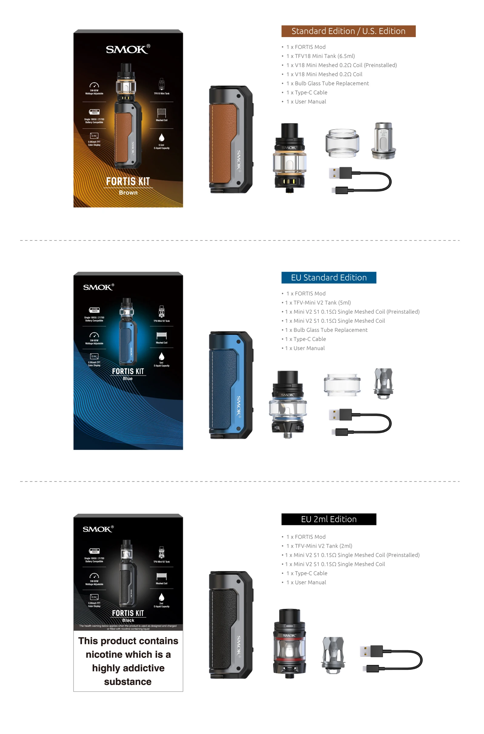 | E-liquid Capacity | 6.5ml/5ml/2ml |