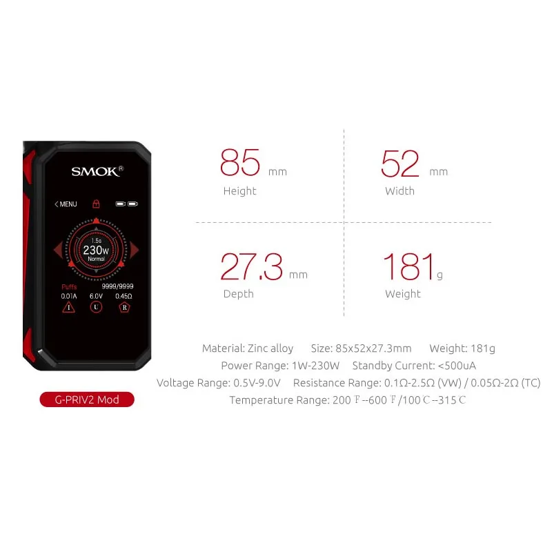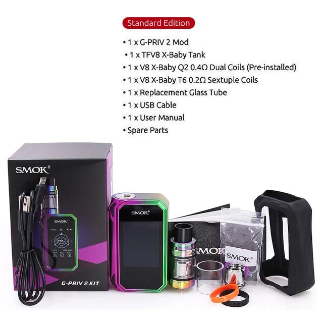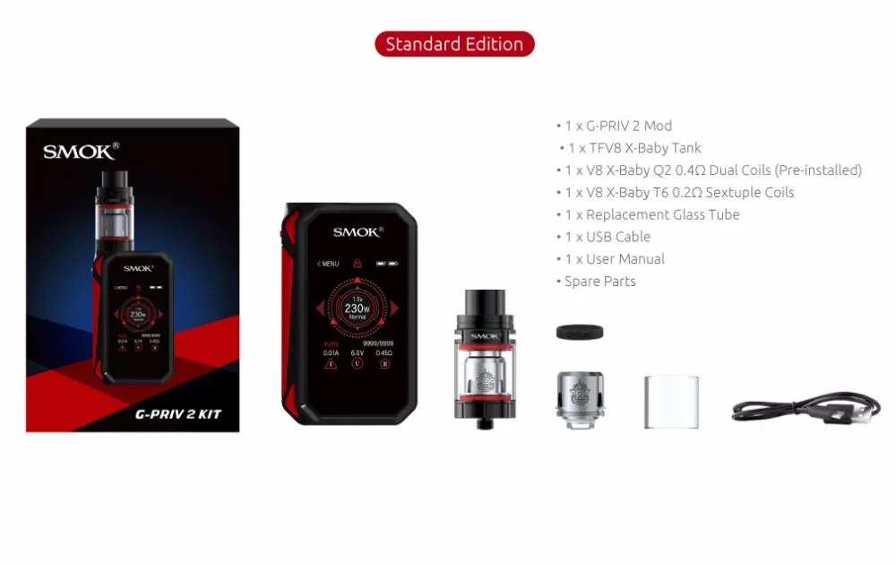 Il se compose de G-PRIV2 mod et TFV8 x-baby tank. Par rapport à G-PRIV, il a un corps plus mince et une interface utilisateur améliorée,
