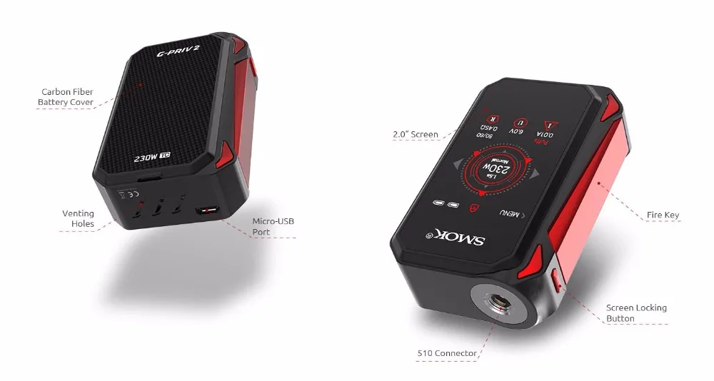 Comprend un mod box moderne alimenté par un nouveau jeu de puces IQ-G, qui peut fournir jusqu’à 230 watts de puissance. C’est 2.4