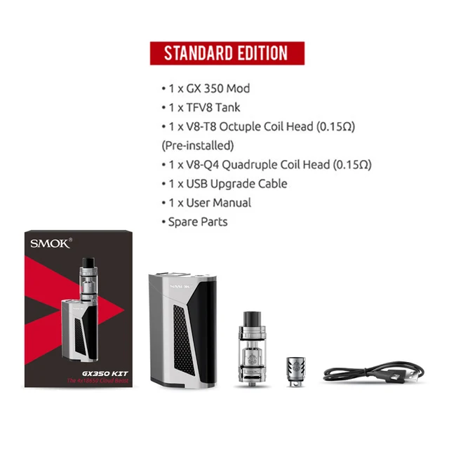 1 avis pour SMOK – Kit de Cigarette électronique 350W, GX350, avec chargeur de batterie TFV8, vaporisateur, réservoir de 6ml