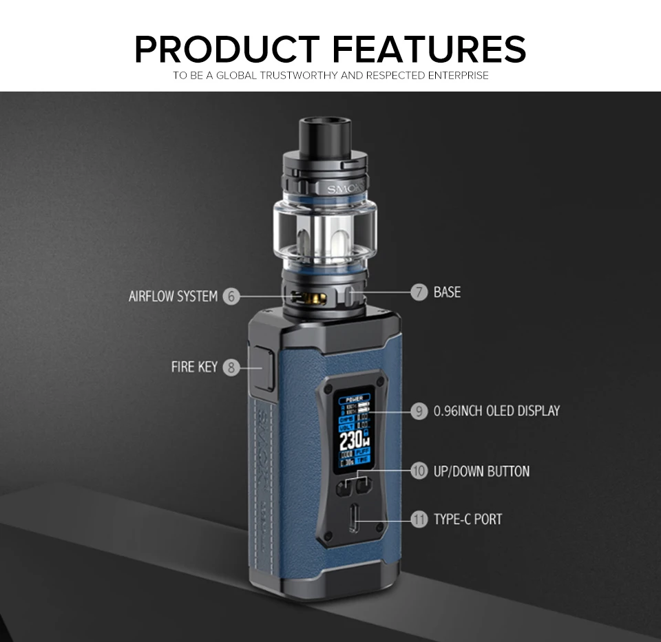 Inspiré de son prédécesseur, MORPH 2 est optimisé avec des opérations plus pratiques et une puissance maximale de 230W pour ouvrir de nouvelles possibilités pour susciter davantage votre vision du meilleur goût. Une fois pris les nutriments de deux batteries externes 18650, il est bien performant pour allumer l’appareil en 0.001s et lisser votre vapotage avec de multiples protections. MORPH 2 améliore le réservoir avec un TFV18 plus puissant, doté d’une plus grande capacité d’e-liquide de 7.5ml et d’une structure de base créative avec cinq supports. L’innovation ne cesse de changer l’expérience de vapotage!