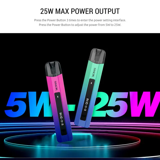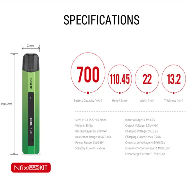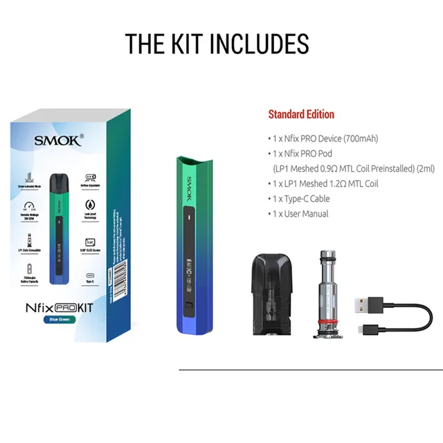 Le Nfix PRO associe des performances exceptionnelles à un design classique et minimaliste. Il adopte une conception de corps simpliste avec une finition à haute brillance, accompagnée d’une technique d’oxydation de sablage raffinée pour un luxe décent. Alimenté par une batterie intégrée de 700mAh, il dispose d’une puissance réglable de 5W à 25W. Ipropose un contrôle de flux d’air réglable vous permettant d’ajuster le volume d’admission et de personnaliser le tirage. L’innovation ne cesse de changer l’expérience de vapotage.