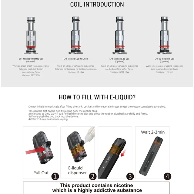 (LP1 maille 0.9ohm MTL bobine préinstallée) (2ml)