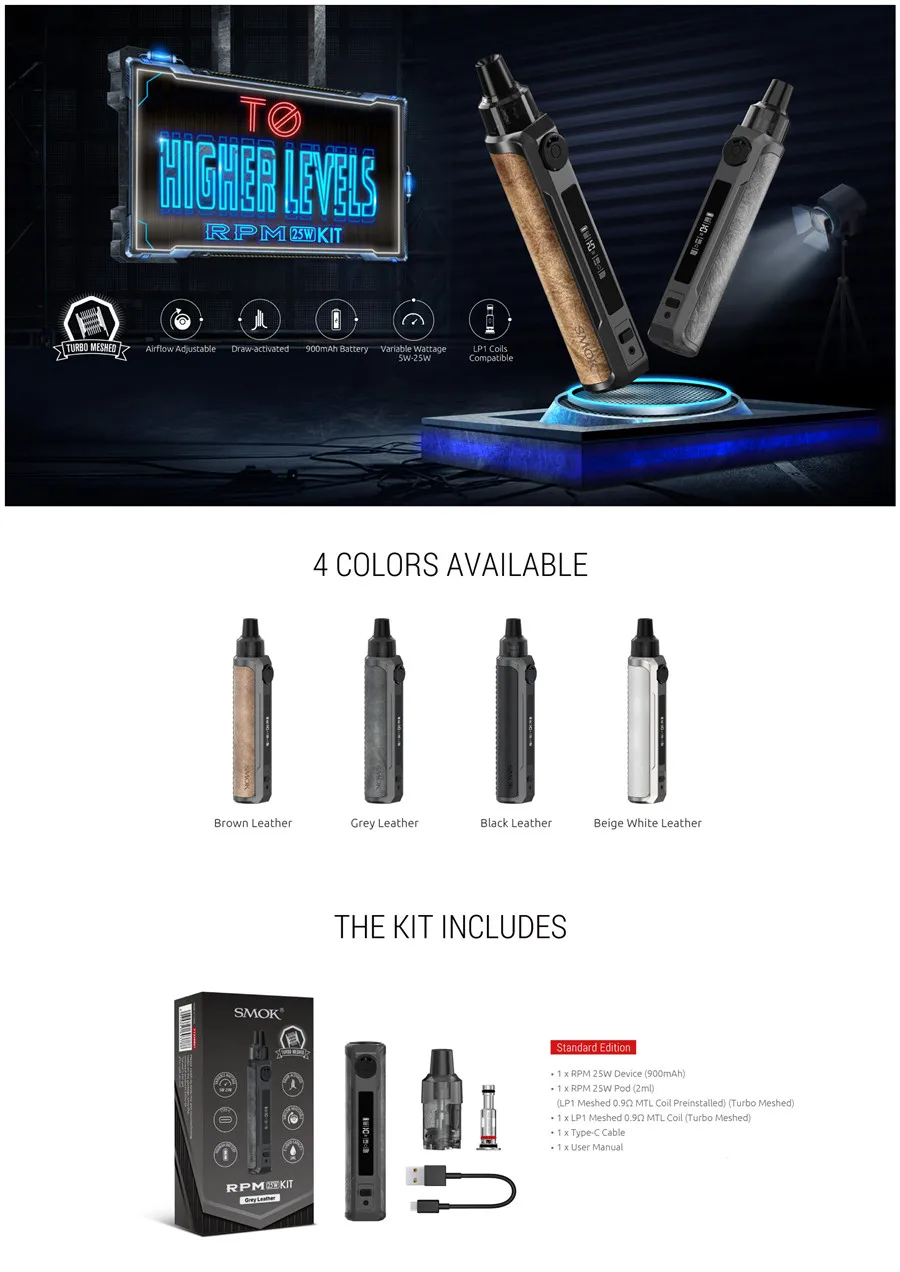 SMOK – Kit de Cigarette électronique Original, 25W RPM, boîte de vapotage, batterie 900mAh, vaporisateur, cartouche de dosette 2ml pour bobine LP1