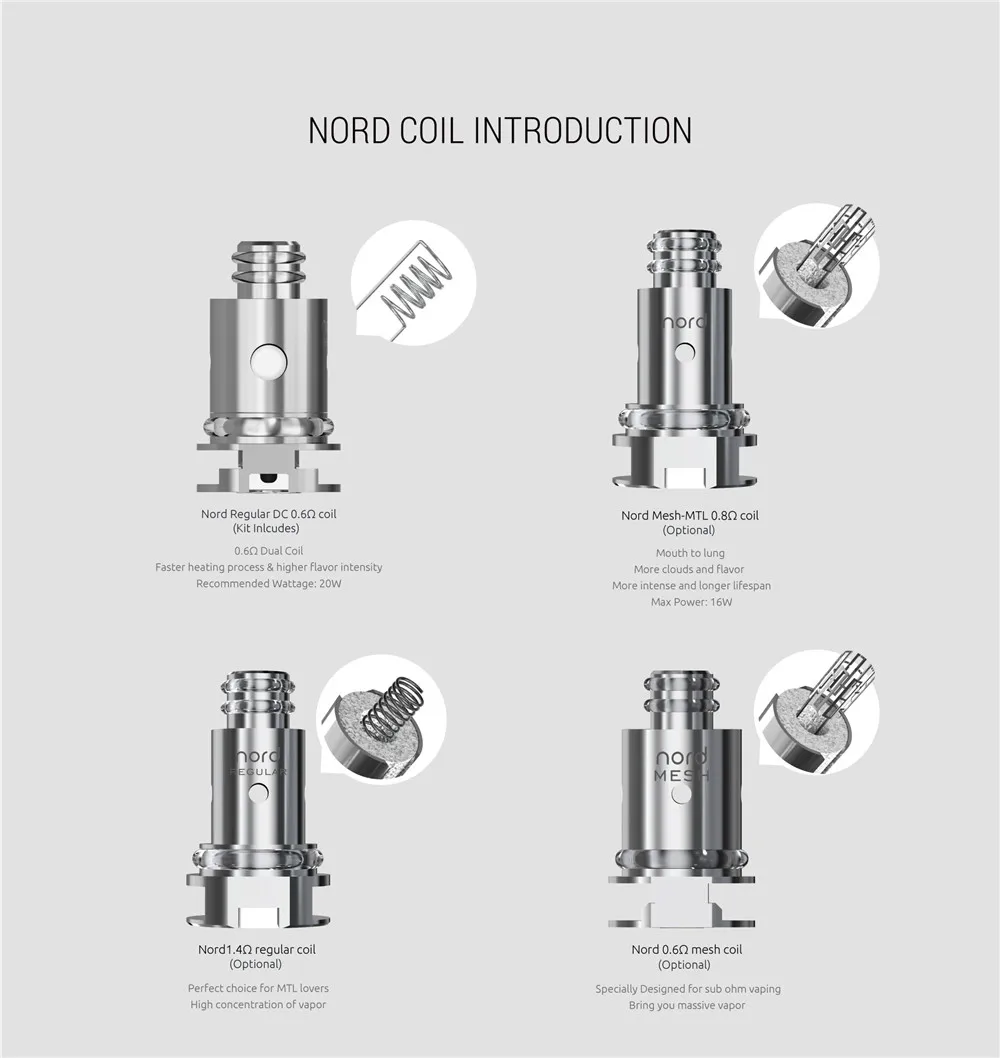 Capacité de la cartouche: 5ml (pod vide)/4.3ml (Pod Standard)/4.5ml (Pod Nord)