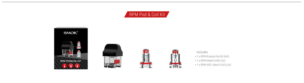 1 x SMOK RPM Pod Standard (RPM Mesh 0.4ohm bobine préinstallée)