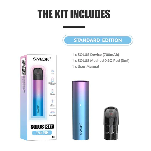 SOLUS analyse le design et la fonction, restant un appareil de vapotage sans bouton avec délicatesse et compacité. La batterie 700mAh intégrée alimente une expérience de vapotage fluide avec un voyant lumineux bleu ou clignotant variant avec les états de travail et est alimentée par un port de charge micro USB en cas de panne de courant. Inspirez pour évoquer l’appareil lorsque vous insérez une dosette remplie de 3ml de la et fixez-la avec une forte connexion magnétique.