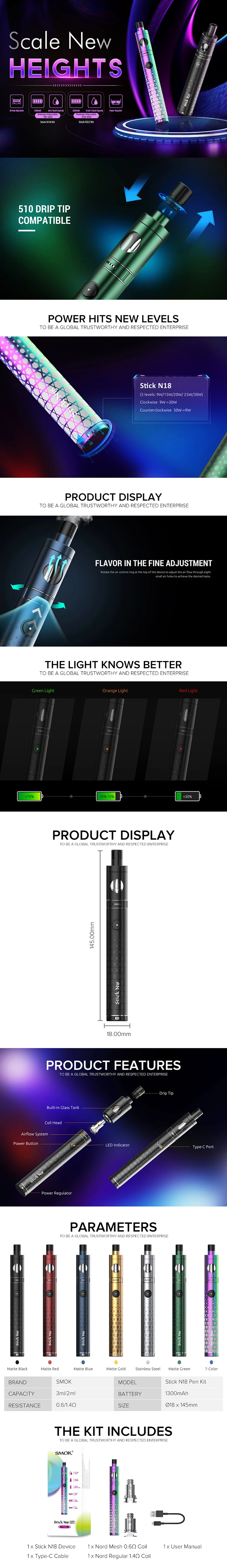 SMOK – Kit de cigarettes électroniques 1300, 3ml, 30W, 510 mAh, avec batterie intégrée, pointe anti-goutte, VS Prince, stylo vapoteur, nouveau, Original, N18