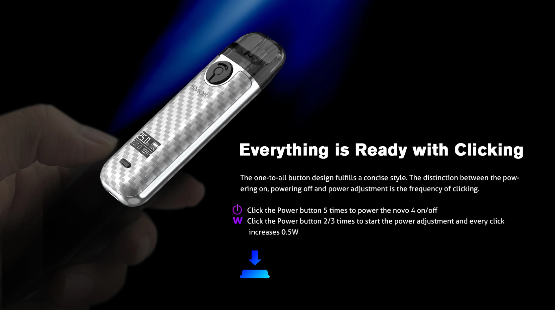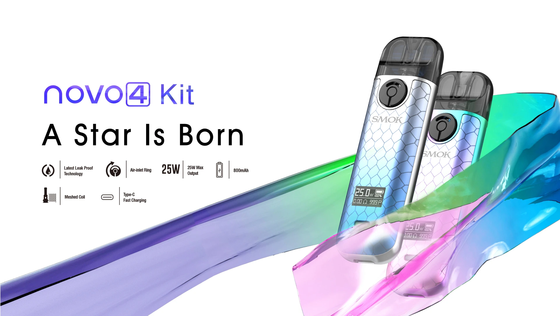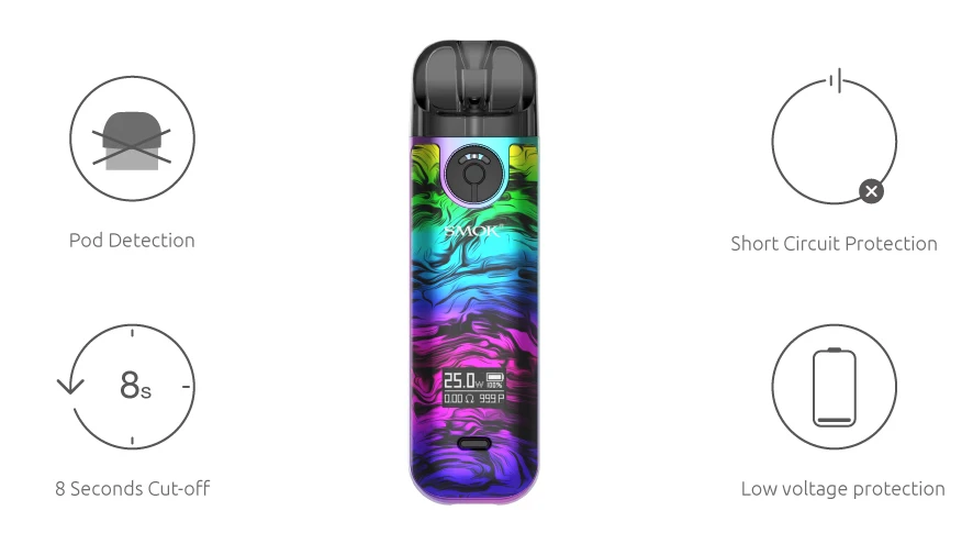 NOVO 4 Kit est la dernière promotion de la série NOVO. Avec des fonctionnalités polyvalentes, une apparence élégante et un style compact, le Kit SMOK NOVO 4 Pod offre un impact immédiat sur le système de pod traditionnel. Le Kit de système multifonctionnel NOVO 4 Pod comprend une batterie interne de 800mAh avec une puissance maximale de 25W. Vous pouvez tourner l’anneau d’entrée d’air pour choisir l’étanchéité de la saveur et l’épaisseur de la vapeur. Le bouton unique vous permet de régler la puissance en plusieurs clics. SMOK NOVO 4 est compatible avec 2ml NOVO 4 Pod et LP1 bobine maillée. Lorsque vous insérez la bobine dans le pod, l’anneau en silicone ajouté au bas de la bobine remplirait l’espace pour éviter les fuites