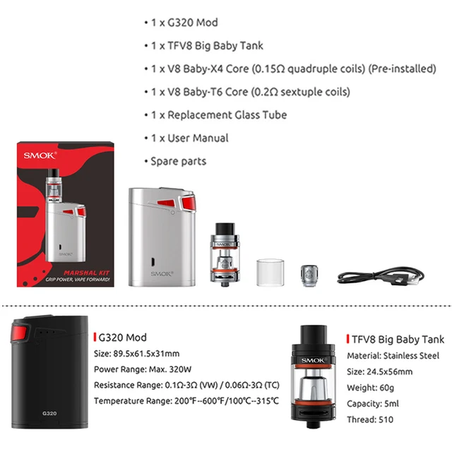 SMOK – Kit de cigarettes électroniques marshall G320, 320W, avec TFV8, réservoir à bobine pour bébé, vaporisateur VS GPRIV 3