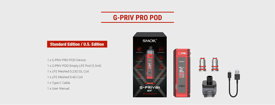 SMOK – Kit de dosettes g-priv Pro 80W, batterie 2500mah, cartouche 5.5ML, bobine maillée LP2, vapotage de cigarettes électroniques