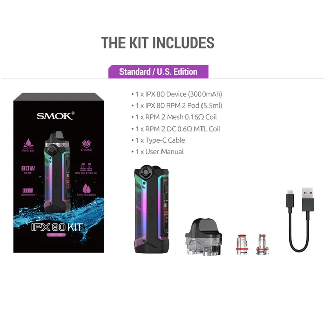 SMOK IPX 80 Vape Pod Kit 3000mAh batterie 5ml IPX 80 RPM 2 cartouches Pod Fit RPM 2 RPM DC bobine Cigarette électronique vaporisateur