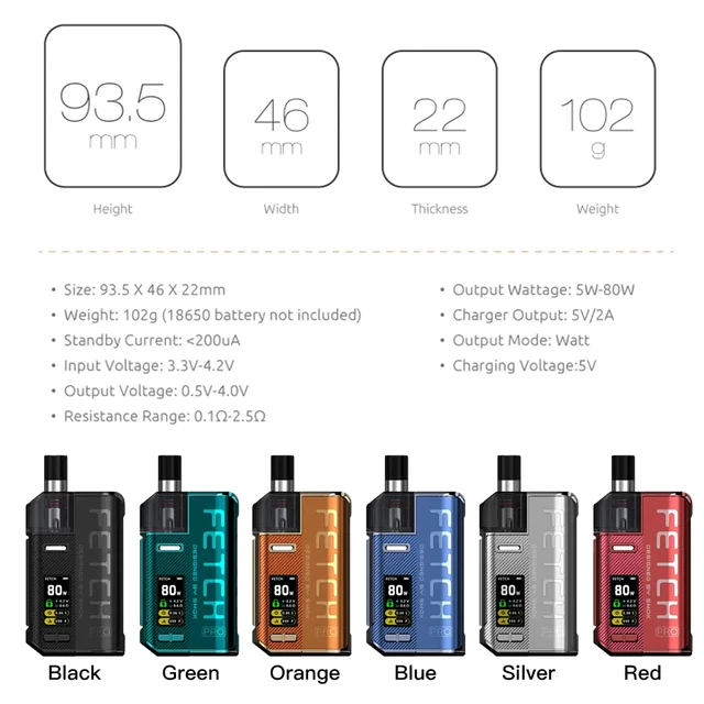 Un système de dosettes tout-en-un qui ajoute des fonctionnalités étonnantes sans être compliqué. C’est Fetch Pro, votre partenaire de vape professionnel supportant une puissance aussi élevée que 80 watts. Il utilise le matériau composite recherché pour vous fournir la meilleure qualité. Bénéficiez des performances globales et de l’efficacité énergétique améliorées du chipset pour vous présenter une récupération puissante. Ce kit comprend deux dosettes Fetch Pro, Fetch Pro RPM pod et Fetch Pro RGC pod, qui sont nés pour la vapeur et la saveur. Bienvenue dans ce kit de récupération assez puissant pour être appelé Pro! L’innovation ne cesse de changer l’expérience de vapotage!