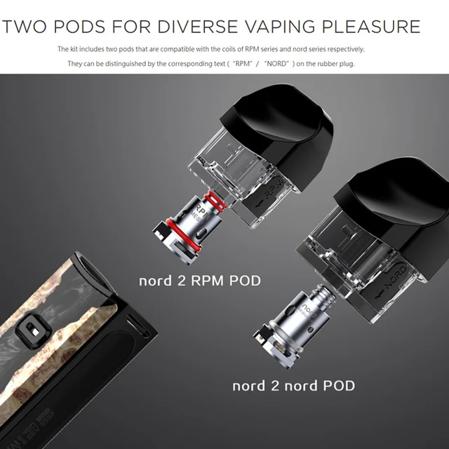 Nord 2, la version améliorée du système de pod à déclenchement par bouton nord, a été entièrement améliorée. Basé sur les caractéristiques, le nord 2 ajoute plus de points forts: écran OLED de 0.69 pouces, capacité accrue à 1500mAh, interface d’affichage de charge, puissance réglable et protection multiple. Il est équipé d’un pod nord 2 RPM et d’un pod anord 2 nord pour offrir plus d’options de pod et de bobine. Nord 2 est un nouvel innovateur, et l’innovation ne cesse de changer l’expérience de vapotage!