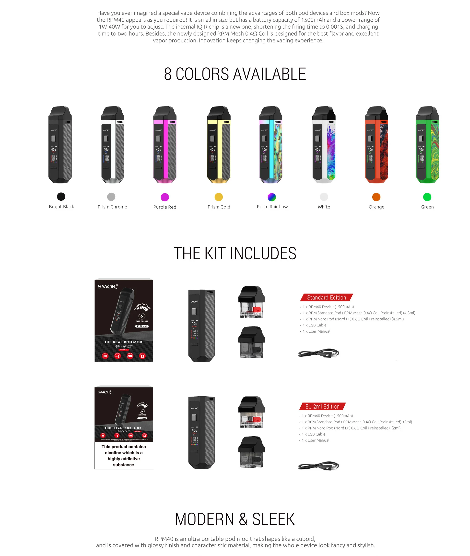 Numéro de Modèle | SMOK RPM40 Pod Kit |