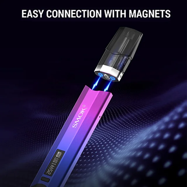 Le Kit Nfix est le kit de système de pod AIO portable parfait. Il est si léger qu’il peut être tenu confortablement dans votre main. Alimenté par une batterie interne de 700mAh avec une puissance maximale de 25W et une capacité de dosette de 3ml, il fournira une utilisation quotidienne pour les utilisateurs lourds. La conception de charge de type c fournira une puissance fiable et une vitesse de transfert plus rapide. Et le pod est fabriqué en PCTG, ce qui permet d’observer le liquide de manière plus intuitive et offre un goût sain. De plus, le pod est équipé d’une bobine MTL cc 0.8Ω, ce qui lui permet de restaurer parfaitement la saveur et le coup à la gorge en ajustant le degré de restauration de la saveur. Avec deux entrées d’air réparties symétriquement sur le dessus, plus d’air peut entrer et il apportera le flux d’air direct à la bobine, améliorera le rendu de la saveur et fournira une production de vapeur riche. Il y a un aimant pour une connexion facile.