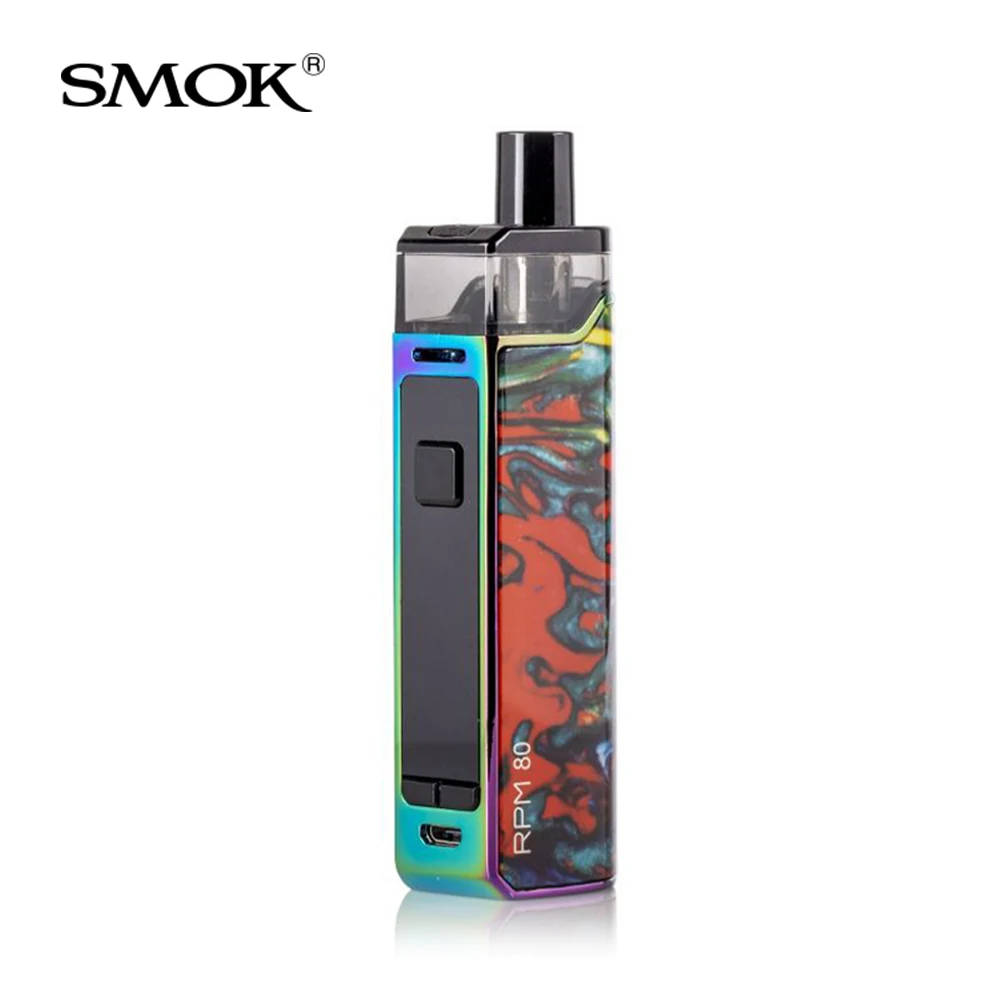Kit SMOK RPM80A été mis à jour en fonction du RPM40. Vous pouvez choisir entre deux versions: Kit RPM80 ou Kit RPM80 Pro. LeKit RPM80Intègre une batterie de grande capacité de 3000mAh pour l’alimentation, qui peut répondre à une vaporisation de longue durée sans se soucier de la capacité insuffisante de la batterie.D’autre part,LeKit RPM80 ProEst alimenté par une seule batterie remplaçable en acier 18650, ce qui est plus pratique pour une utilisation quotidienne. Et RPM80 Pro peut supporter la transmission de puissance de sortie jusqu’à 80W, plus puissant. Il dispose de modes de puissance/tension Variable au choix. Chargement rapide via le Port Micro USB pour garder la vapeur pendant longtemps. En outre, RPM80 Pro Pod compatible avec deux types de cartouches: RPM80 RPM Pod qui est compatible avec toutes les bobines RPM40 et RPM80 RGC Pod qui a une maille conique RGC innovante 0,17 ohm bobine intégrée, fournit un nuage et une saveur plus puissants. Et RPM80 Pro est plus grand que RPM40 dans toutes les dimensions mais légèrement plus léger que lui, seulement 97.3g. En outre, le Kit SMOK RPM80 Pro Pod dispose d’un chipset nouvellement développé, ce qui le rend plus remarquable. J’espère que vous l’aimez.