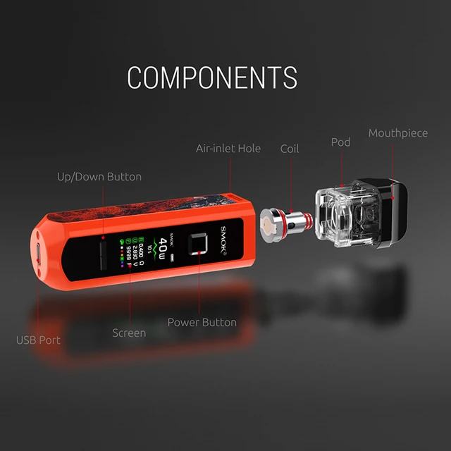 18 avis pour SMOK – Kit de vapoteur pour Cigarette électronique, 40W, 40 tr/min, batterie 1500mAh, cartouche 4.3ml, maille 0,4 ohm, bobine 4.5ml, Nord Pod
