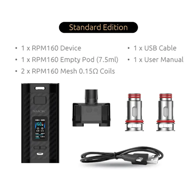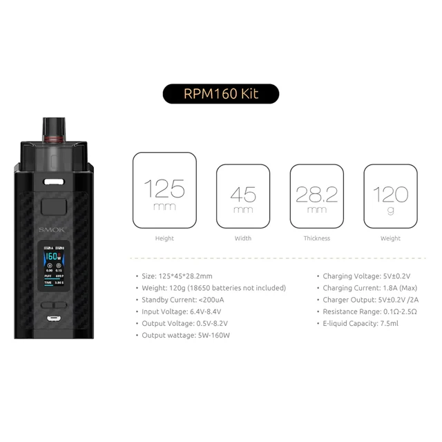 SMOK – Kit de vapoteur RPM160 avec batterie 160W, avec cartouche de 7.5ML, bobine S8096, RPM 160 Mesh