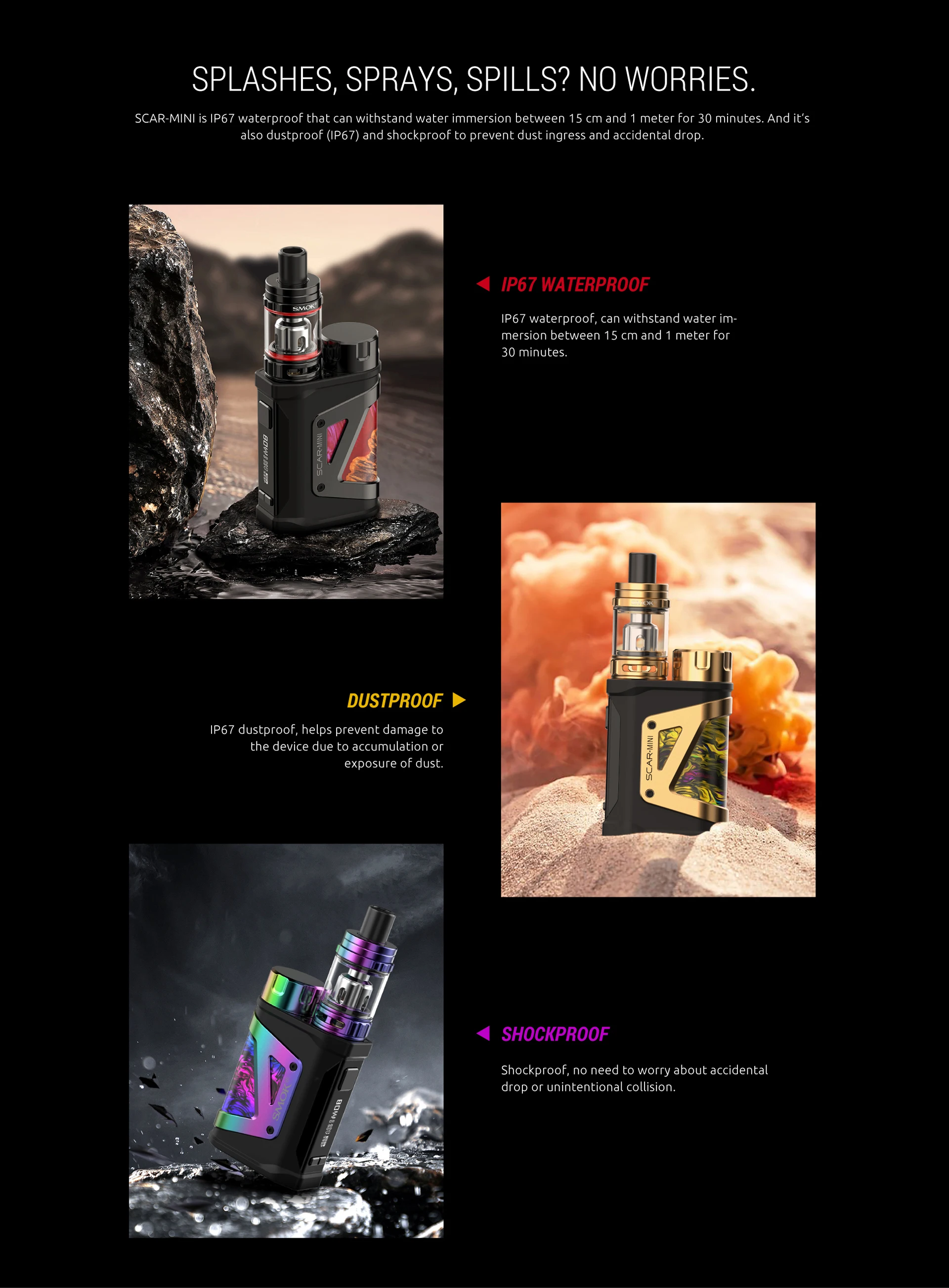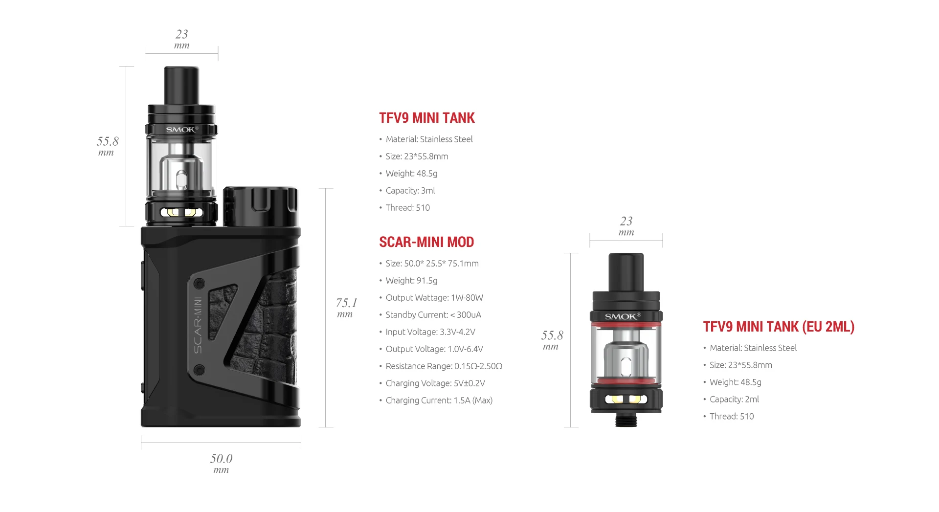 2. Se compose de SCAR-Mini Mod et d’un Mini réservoir TFV9 de 3ml