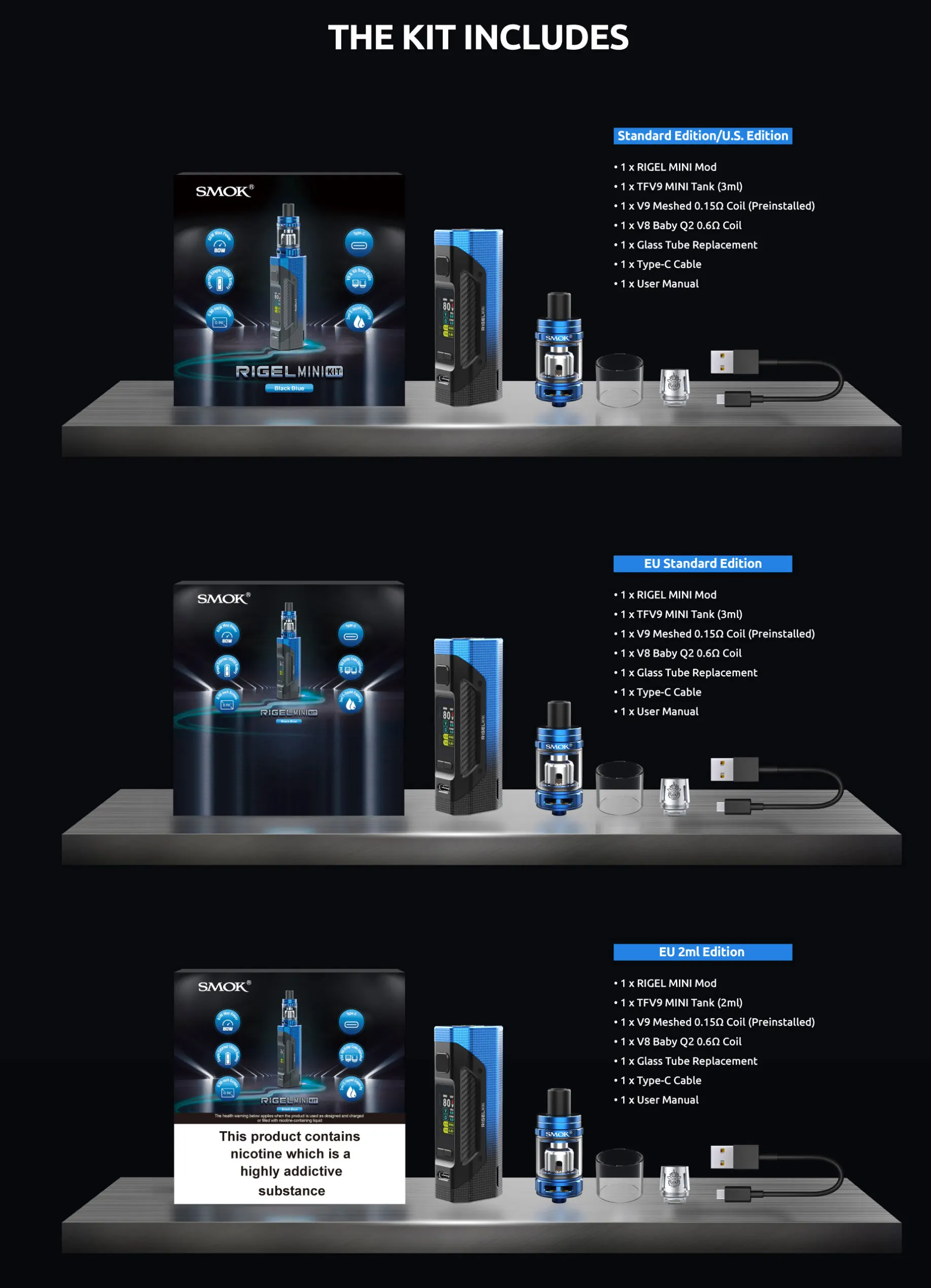 SMOK Rigel Mini Kit Original avec 80W Rigel Mini Box MOD Vape 3ml TFV9 mini réservoir V9 bobine maillée Cigarette électronique vaporisateur