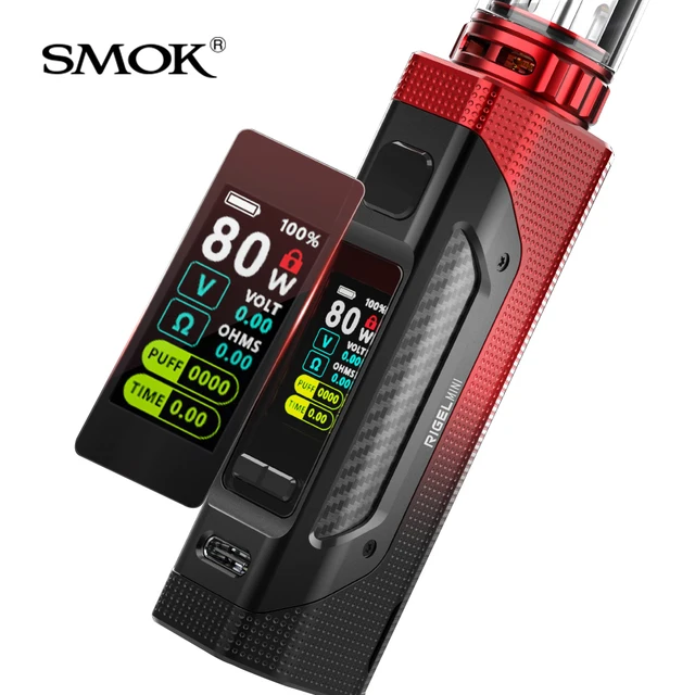 SMOK Rigel Mini Kit est une version miniature du Kit SMOK Rigel 230W. Il hérite des avantages et des fonctions exceptionnelles de Rigel tout en étant mince et léger, et ses performances répondent aux besoins. Il se reflète non seulement dans la réduction de la taille du mod, mais correspond également au Mini réservoir TFV9 plus léger et plus petit. En termes d’apparence, la palette de couleurs originale est conservée, et elle est fabriquée en alliage de zinc durable, avec une texture étonnante. La couche extérieure est faite d’un revêtement en caoutchouc souple, et elle est confortable quand on tient Rigel Mini. Rigel Mini kit nécessite une seule batterie externe 18650 pour fournir une alimentation continue. Rigel Mini utilise type-c pour une charge rapide, minimisant ainsi les temps d’arrêt, et le courant de sortie atteint 1,4a. Grâce à la technologie de jeu de puces légendaire de la marque, il est possible d’obtenir de multiples fonctions constantes et fiables. La plage de puissance de 1W-80W vous permet de profiter des nuages et des saveurs les plus satisfaisants tout au long de la journée selon vos préférences de puissance. L’appareil dispose d’un écran couleur TFT complet de 0.96 pouces et de boutons de navigation, vous permettant de personnaliser facilement les paramètres.