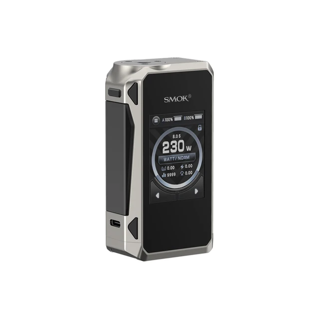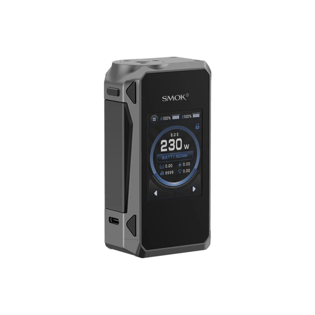 SMOK G-PRIV 4 Mod 230W. Le mod est alimenté par une puce IQ-M, prend en charge deux batteries 18650. Un écran tactile de 2.0 pouces y est ajouté, ce qui facilitera l’opération interactive. De plus, une grande clé de tir latérale est conçue pour une utilisation facile sur l’appareil. Il existe trois modes pour satisfaire différents besoins: Mode puissance, Mode TC, mon Mode. Compatible avec Mini réservoir TFV18/Mini bobine maillée TFV18, il vous apportera un nuage de bête et une saveur de beauté.