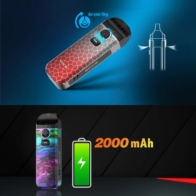 Nord 4(80W) est un kit de système de pod emblème avec des capacités polyvalentes, qui peut donner plein jeu aux performances et aux avantages de l’ensemble de l’appareil. Il dispose d’une batterie intégrée de 2000mAh, suffisante pour fournir une puissance maximale de 80 watts. Le kit est livré avec deux dosettes nord 4 de 4.5ml, l’une avec une bobine de maille RPM 2 et l’autre avec une bobine de maille RPM. En outre, deux anneaux d’entrée d’air sont intelligemment conçus sur le dessus de l’appareil pour un réglage libre de l’entrée d’air. Nous avons construit ce magnifique pour vous, et vous le faites vous-même. L’innovation ne cesse de changer l’expérience de vapotage!