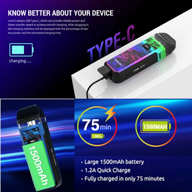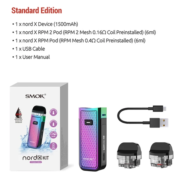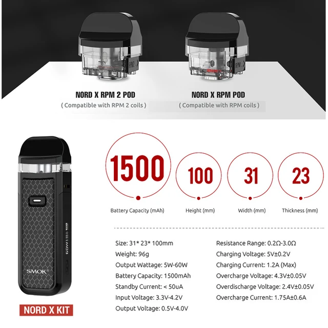 SMOK NORD X – KIT de Cigarette électronique 60W, batterie 1500mAh, vaporisateur 6ml RPM Mesh Core RPM 2 bobine cartouche Pod VS Nord 2 Nord 4