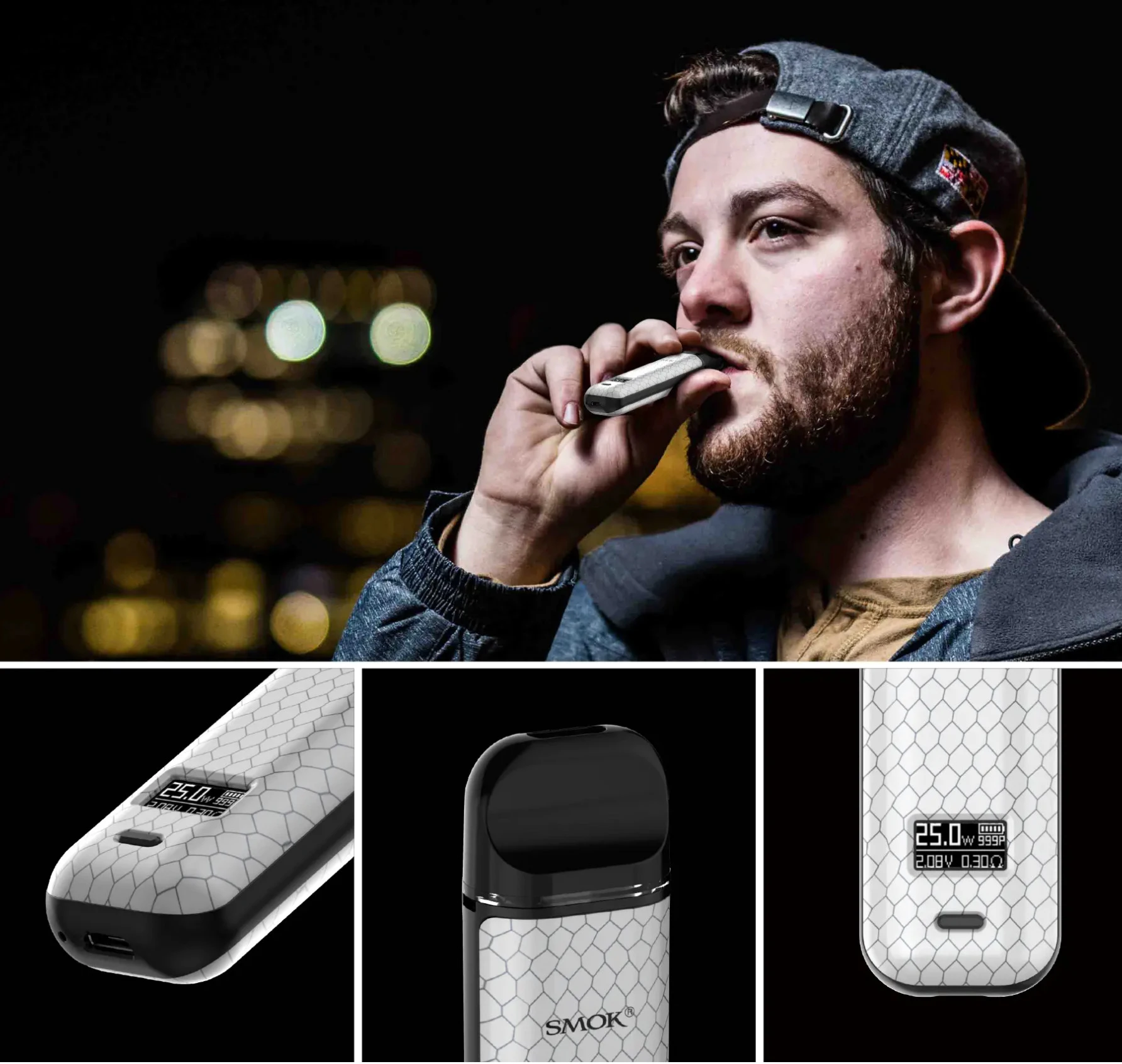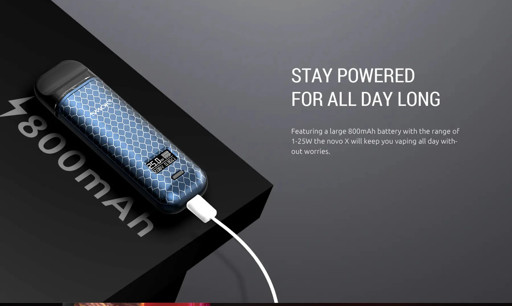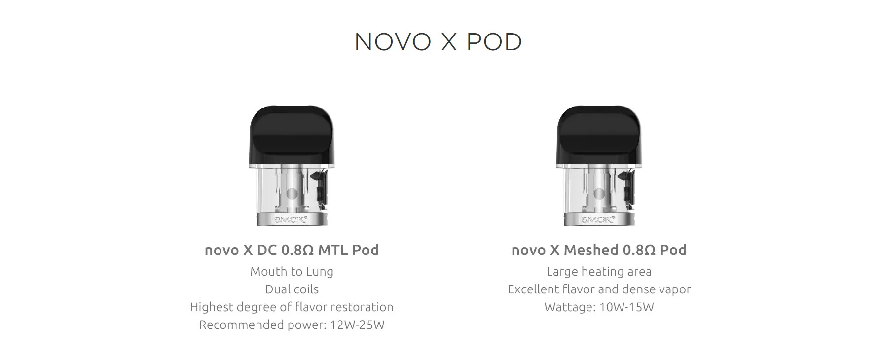 La série novo complète présente un autre nouveau membre, le novo X, qui est un système de pod élégant et ergonomique alimenté par une batterie de 800mAh. Il a une plage de puissance réglable de 1-25 watts, et utilise deux dosettes de 2ml: une dosette à double bobine de 0.8ohmpod et une dosette à simple maille de 0,8ohm, vous permettant de profiter d’une vaporisation MTL de haut niveau avec un coup de gorge satisfaisant. Le novo X adopte un petit bouton d’alimentation et un écran OLED pour présenter un nouveau look et offrir plus de possibilités à explorer. L’innovation ne cesse de changer l’expérience de vapotage.