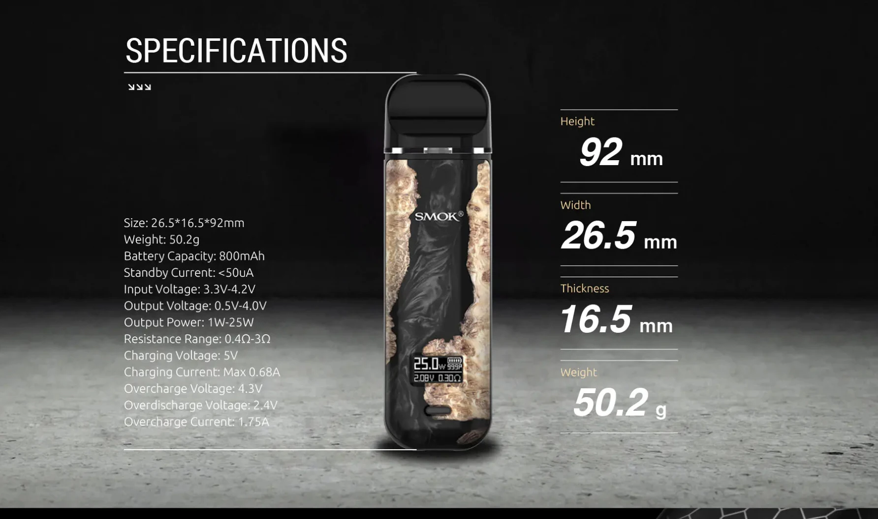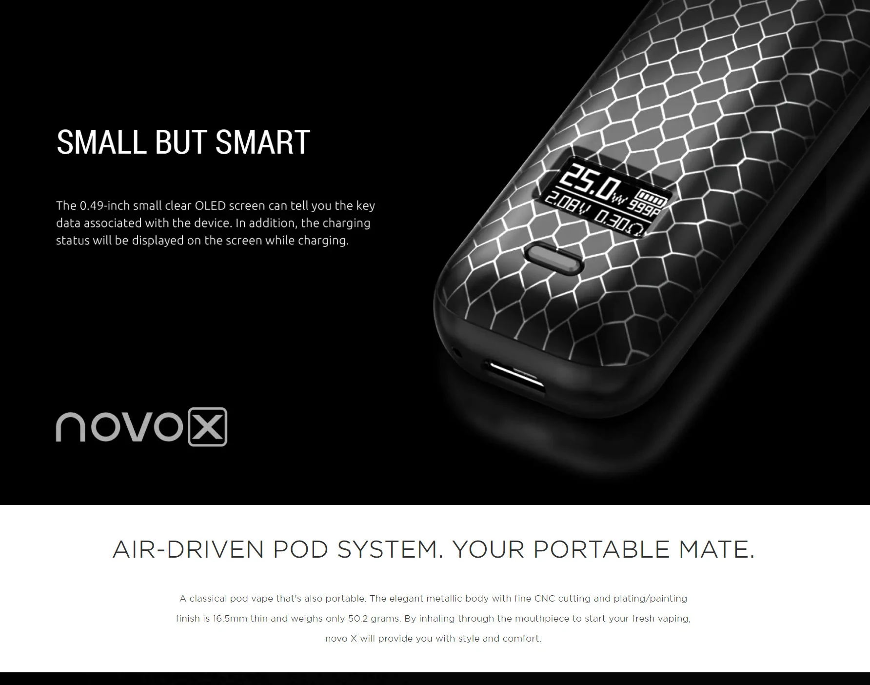 | NOVO X Size | 26.5*16.5*92mm |